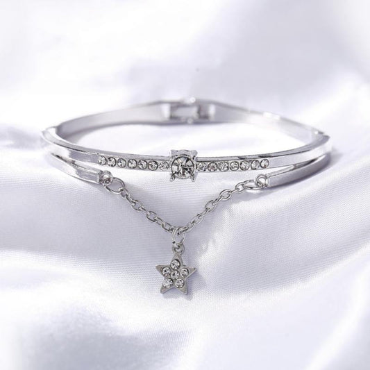 La Belle Fantastique Star decor rhinestone solid cuff bracelet | Bangle Bracelet | Bracelet for Women | gold bangle Bracelet | Cuff Bracelet