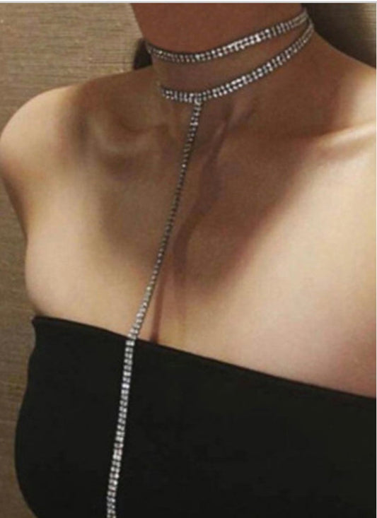 La Belle Fantastique Silvery Double Layer Crystal Full Rhinestone Choker Necklace, gifts for her, sister's gift, mom's gift, daughter's gift