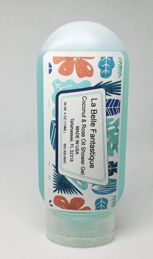 La Belle Fantastique Rose and Coconut Scented Shower Gel | all natural bath time that is gentle & non toxic, safe for kids children, paraben free 4oz
