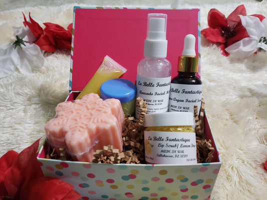 La Belle Fantastique Gifts Under 30, Natural Bath Gift Basket Women | 1 Lip Gloss | 1 Lip Mask | 1 Lip Scrub | 1 Shea Butter Soap | 2oz Facial Mist | 1oz Primrose Argan Facial Serum
