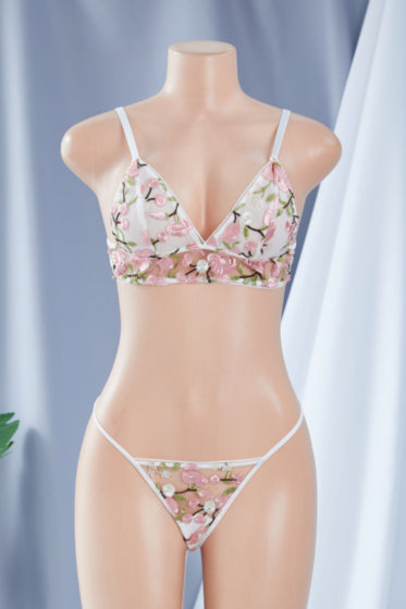 La Belle Fantastique 2 Pc Pink Daisy Embroidery Sexy Lingerie Fashion Lingerie