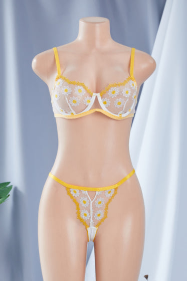 La Belle Fantastique 2 Pc Yellow Daisy Embroidery Sexy Lingerie