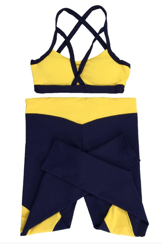 La Belle Fantastique | Contrast color padded vest back crossing stretch soft yoga two-piece set | Women Yoga Pants
